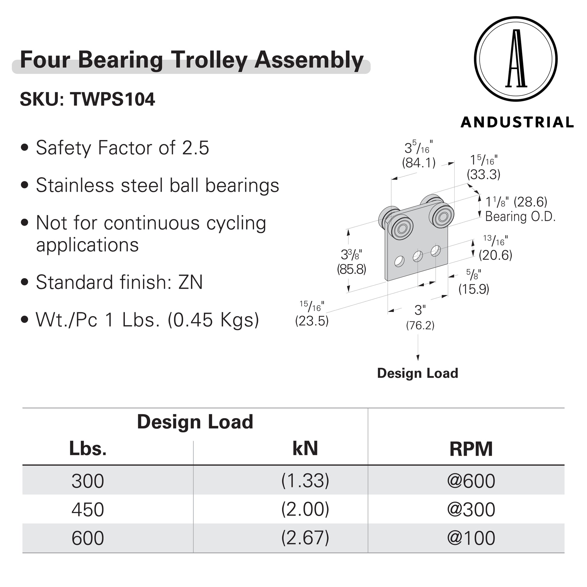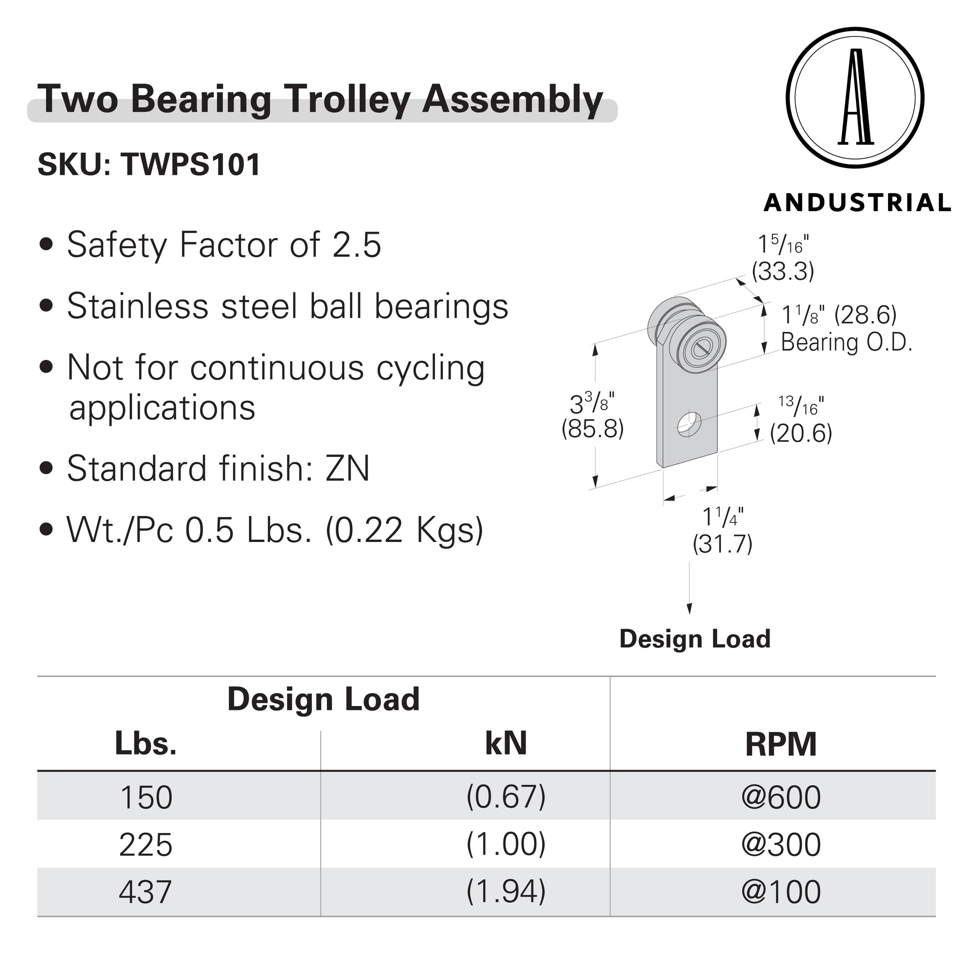 【Impressive Load Capacity】Experience the strength of 2 bearing trolley Assembly. Designed to handle heavy loads with ease, it boasts an impressive load capacity of 150 lbs at 600 RPM, 225 lbs at 300 RPM, and an impressive 437 lbs at 100 RPM load. Trust in its robust construction to support your demanding applications and provide reliable performance at various speeds. Elevate your operations with a trolley assembly that delivers exceptional load-bearing capabilities.
